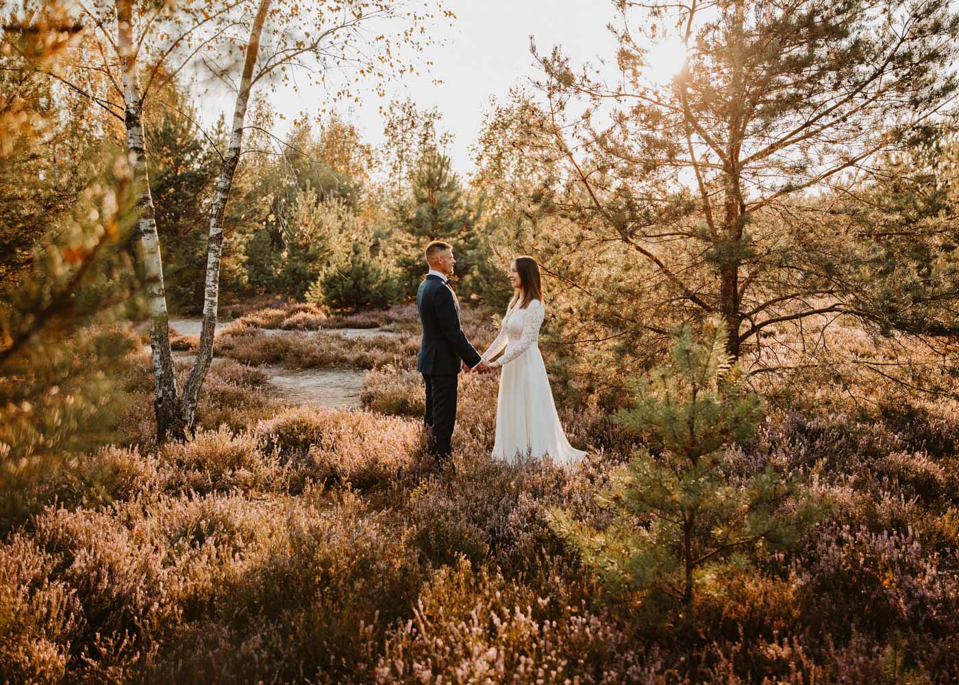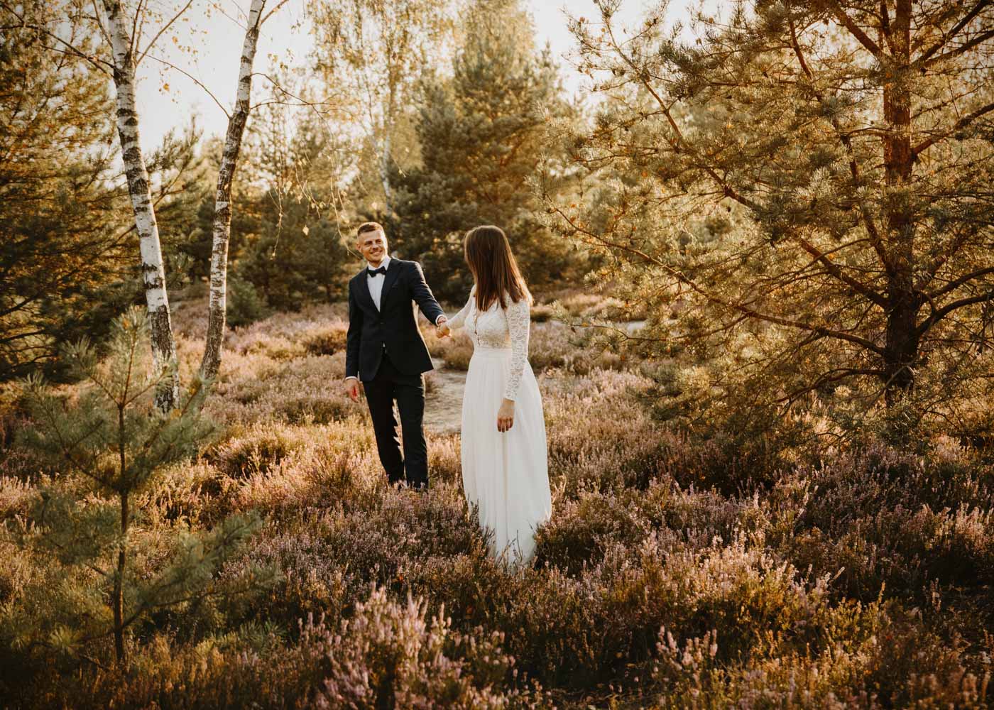 Sesja poślubna w plenerze – Wrzosowiska pod Warszawą